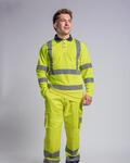 Certified to EN ISO 20471:2013+A1: 2016 Class 3, HV Orange/Navy also conforms to RIS/3279/TOM Issue 1:2016, Ribbed contrast collar, Three button placket with contrast colour buttons and one spare button, Twin needle stitching detail, Side seam vents, Reflective tape over shoulder and around body, Tape around body finishes before side seam to ensure comfort and ease of fit