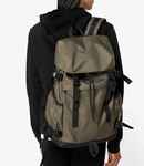 100% recycled 600D polyester. Coated fabric. Grab handle. Back panel and shoulder straps made from mesh fabric. Black buckles. Top flap with adjustable drawcord and stopper closure. Main zip compartment. Front zip pocket. Side pockets with bias binding finish and adjustable straps. Rear zip pocket. Internal zip pockets. Reinforced bottom. Tag free. Capacity 26 litres. Recycled polyester is made from post-consumer waste.